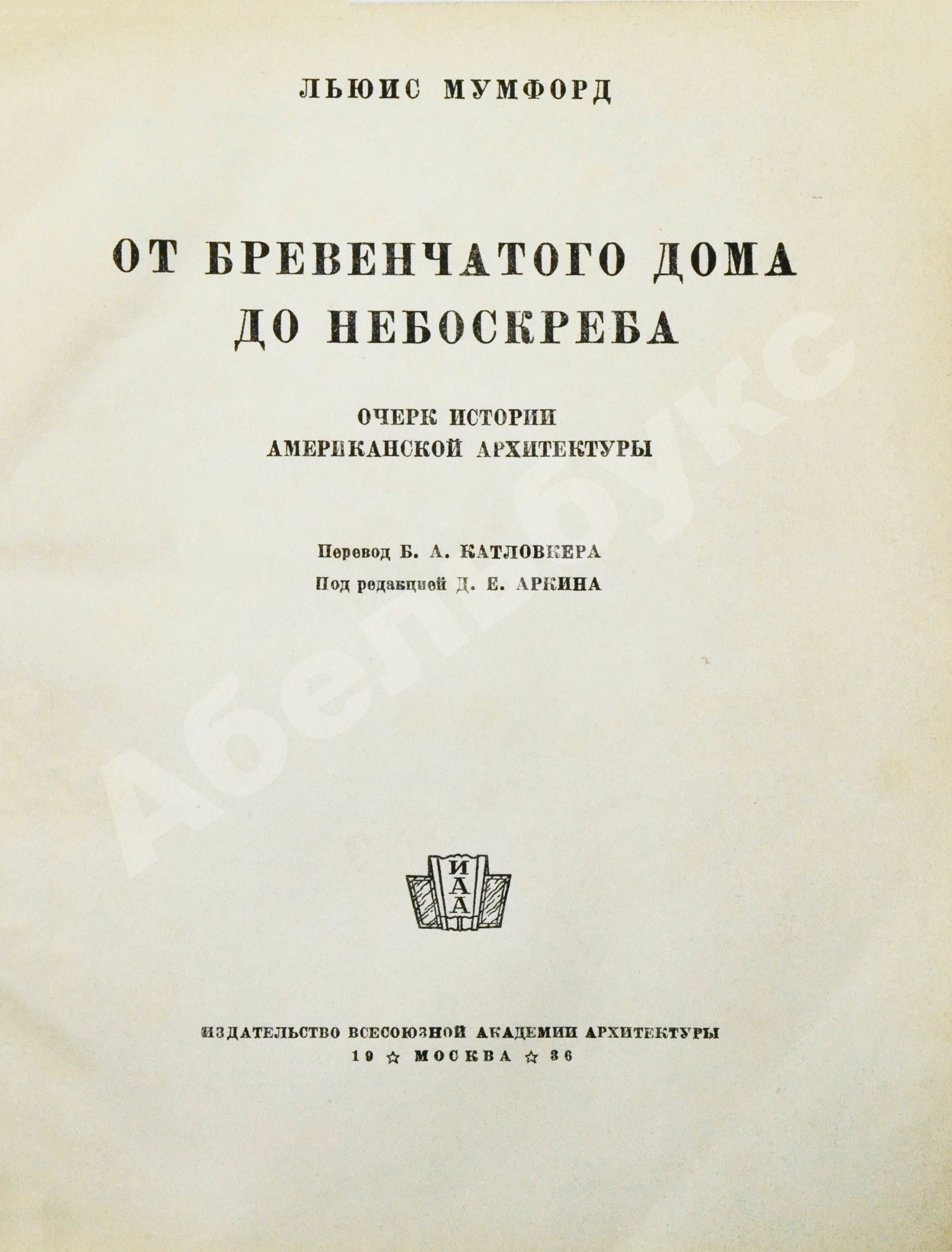 «От бревенчатого дома до небоскрёба. Очерк истории американской архитектуры» – первое русскоязычное издание классического труда Мумфорда. Издание вышло в Москве под эгидой Всесоюзной академии архитектуры.