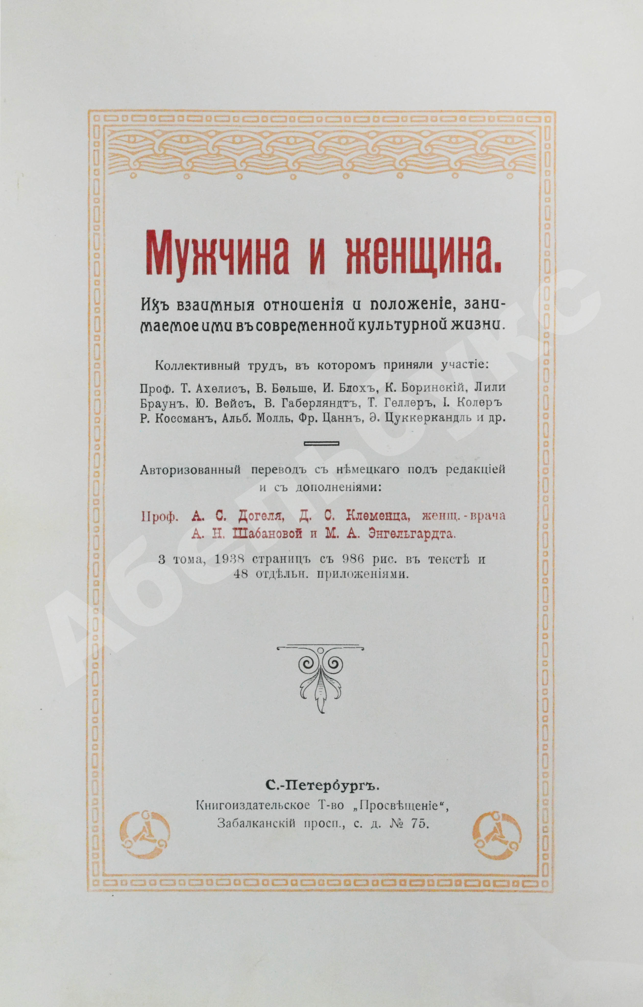Шокирующая книга, притягивавшая роскошным оформлением, откровенными иллюстрациями и интимными темами, которые освещались в тексте. Наряду с «Человеком» Ранке, «Жизнью животных» Брема и словарём Брокгауза энциклопедия была в каждом уважаемом доме начала ХХ века, но среди этих «сокровищниц мысли» ценилась особенно. Не случайно Васисуалий Лоханкин, когда горела «Воронья слободка», первым делом спасал из огня энциклопедию «Мужчина и женщина».