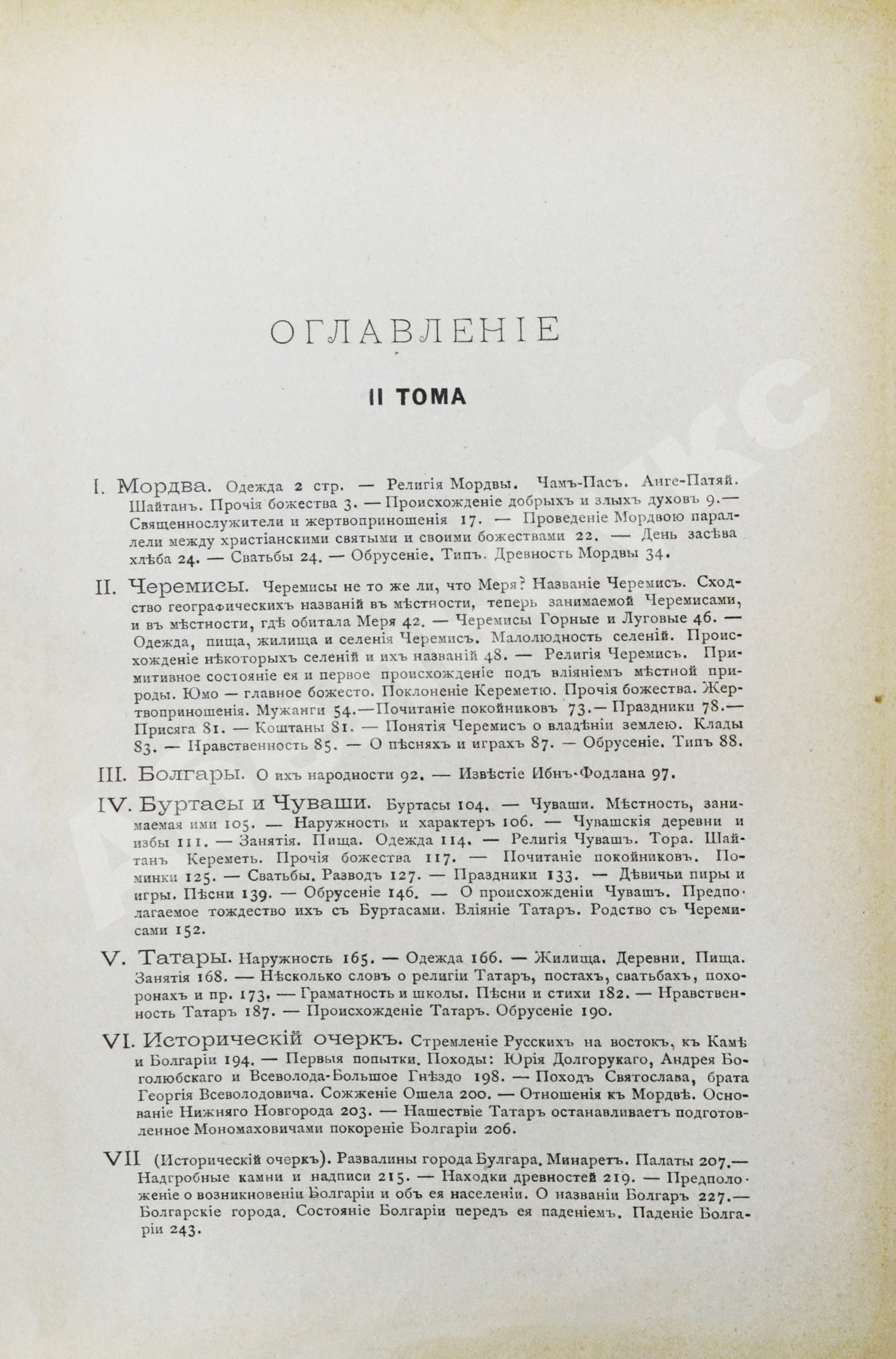Географические данные дополняют исторические и этнографические сведения. Часть второго тома посвящена народностям, населявшим земли по средней Волге – мордве, черемисам, болгарам, буртасам, чувашам и татарам. Особое внимание автор уделяет обрусению этих народностей, проводя мысль, что «физиологическое смешение» благотворно повлияло на развитие «молодого русского народа».