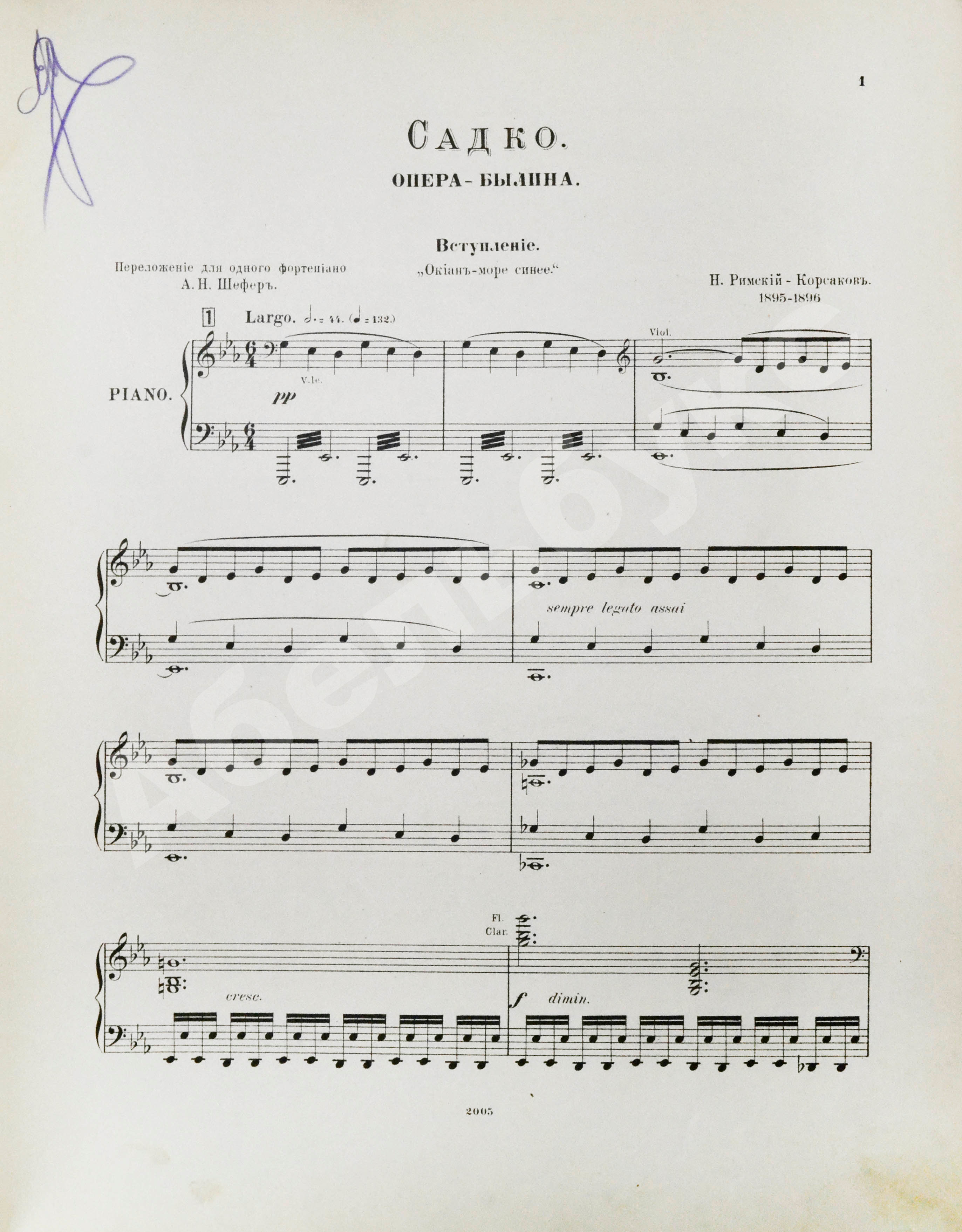 Переложение для одного фортепиано А.Н. Шефер