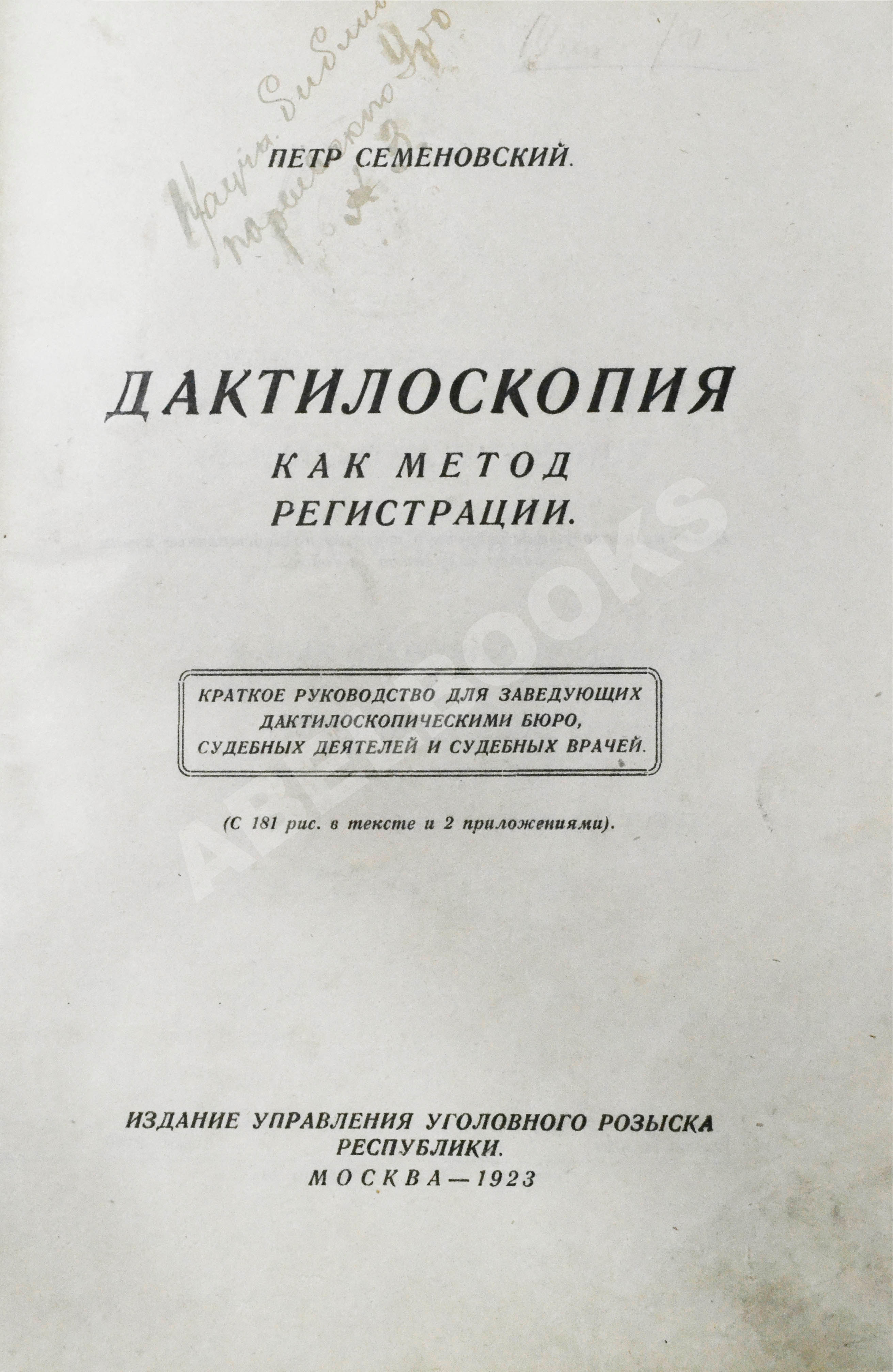 Семёновский, П.С. Дактилоскопия как метод регистрации