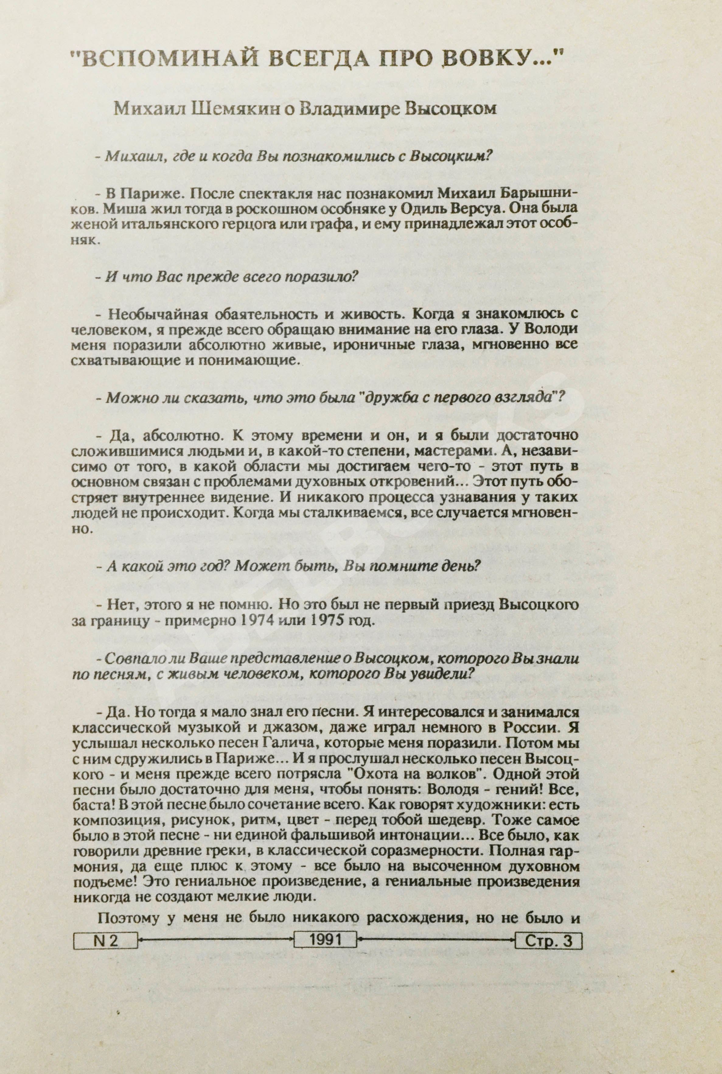 Михаил Шемякин о Владимире Высоцком. Библиотека «Ваганта»