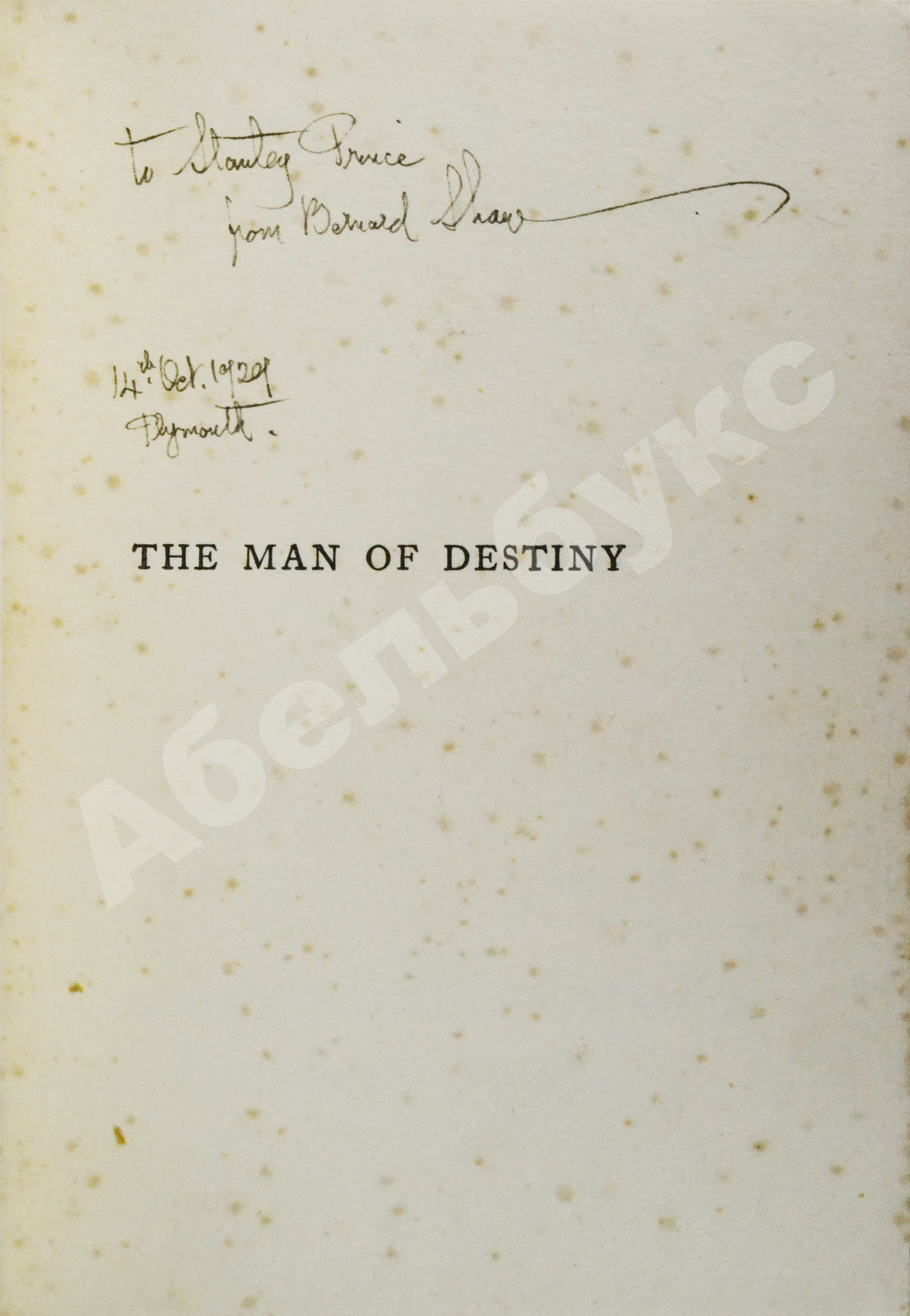 На авантитуле автограф Бернарда Шоу: «To Stanley Prince from Bernard Shaw. 14th Oct. 1929. Plymouth».