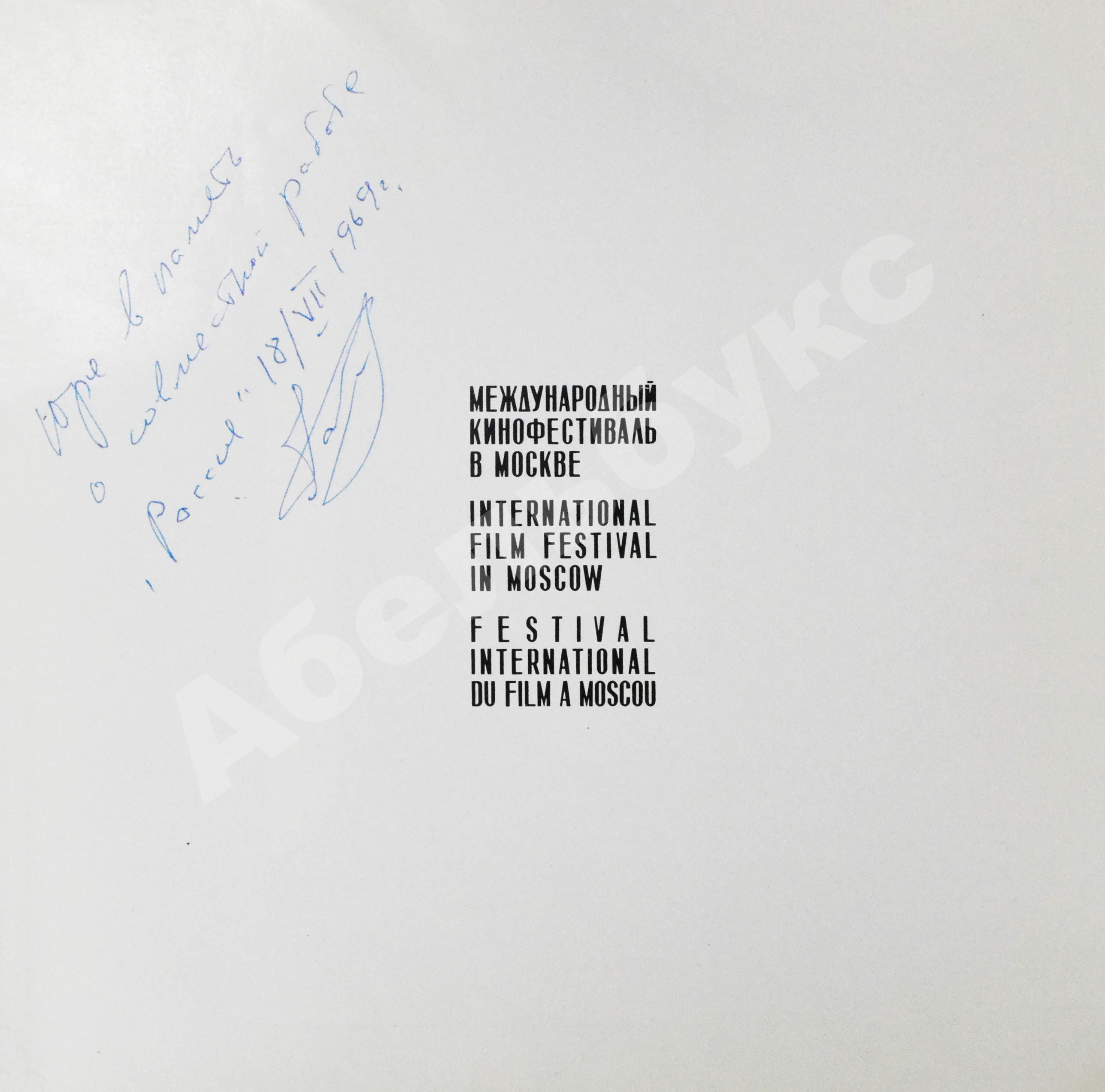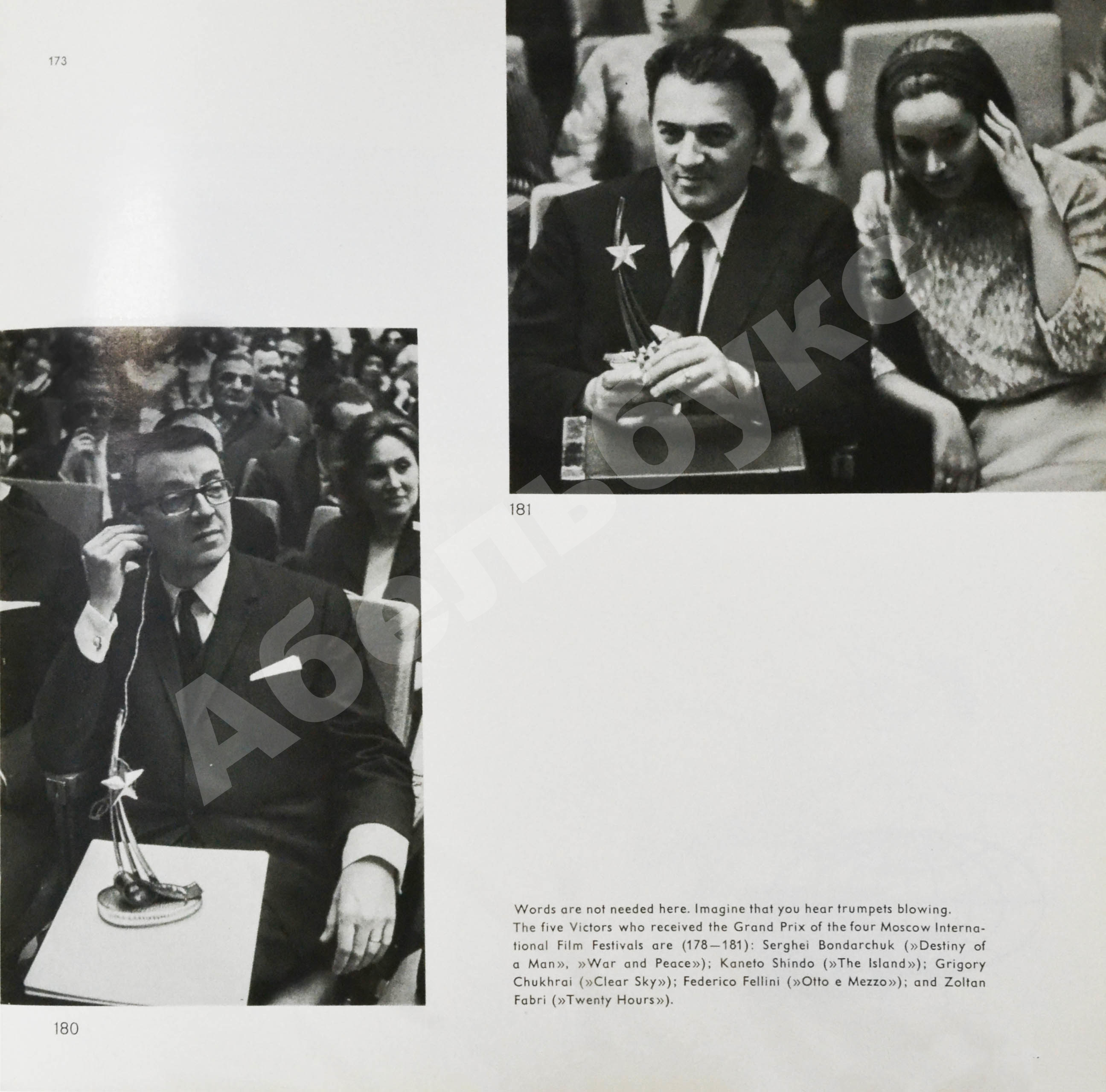 Книга на английском языке, посвящённая первым четырем Международным кинофестивалям в Москве. Содержит множество фотографий кинозвёзд, режиссёров, других гостей фестивалей, например, Екатерины Фурцевой, а также дружеские шаржи на некоторых артистов.