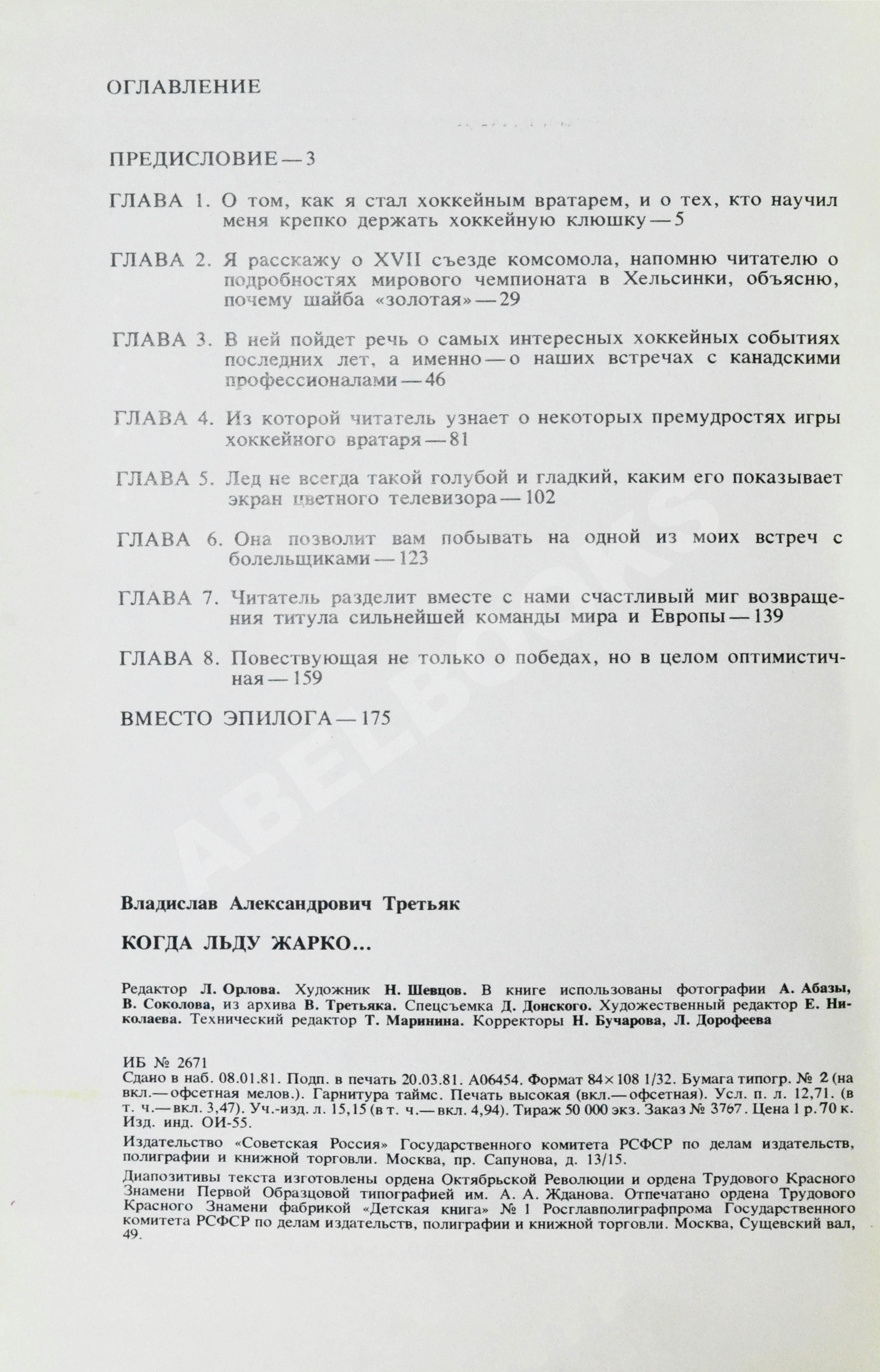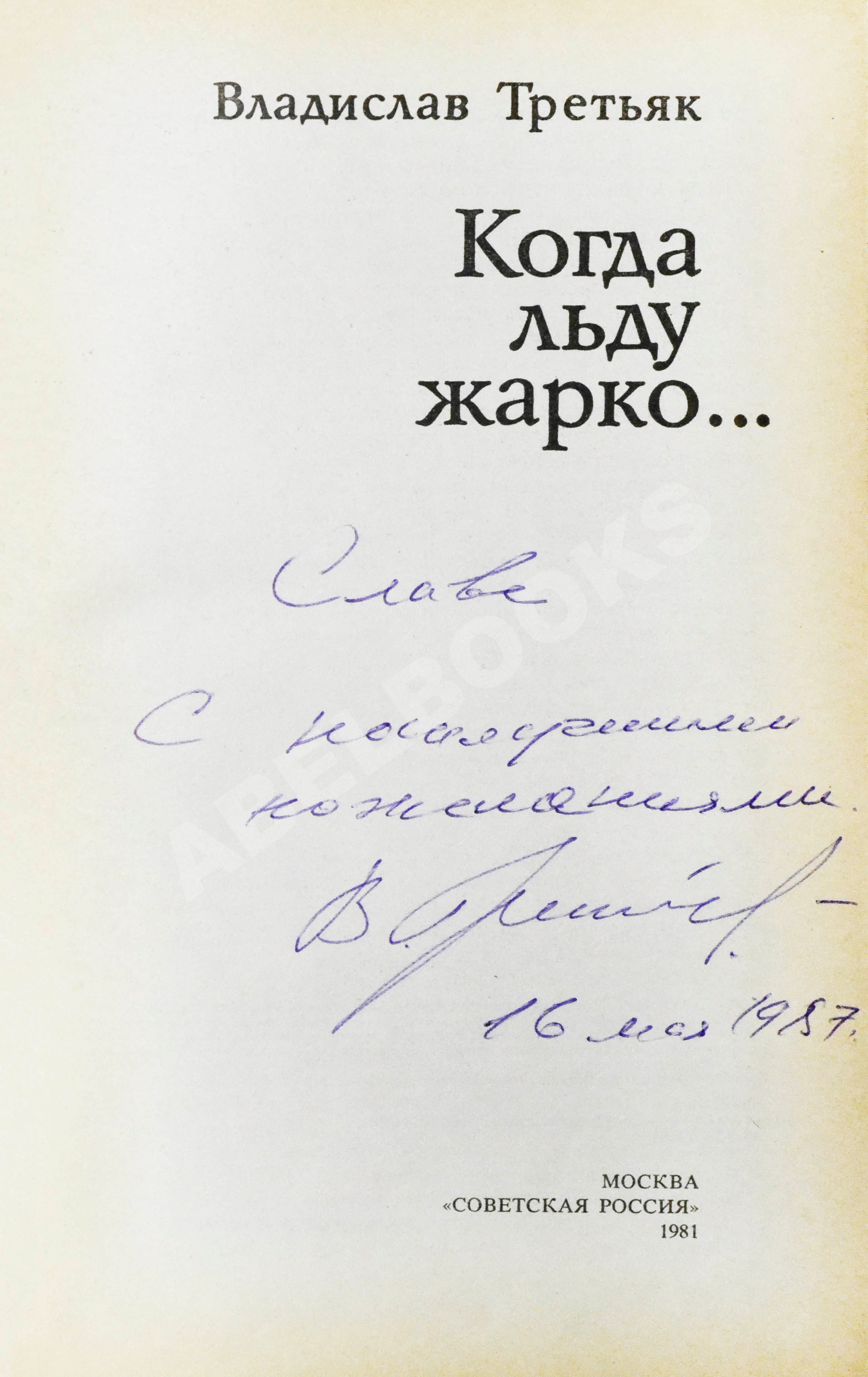 На титульном листе автограф Владислава Третьяка: «Славе с наилучшими пожеланиями. В Третьяк 16 мая 1987.».