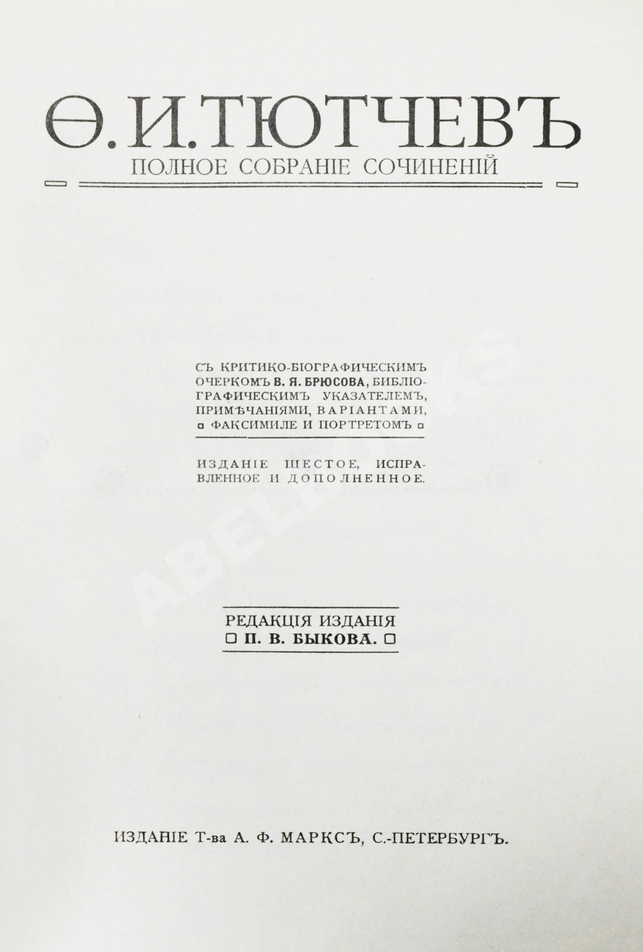 С критико-биографическим очерком В.Я. Брюсова, библиографическим указателем, примечаниями, вариантами, факсимиле и портретом / под ред. П.В. Быкова; 6-е изд.