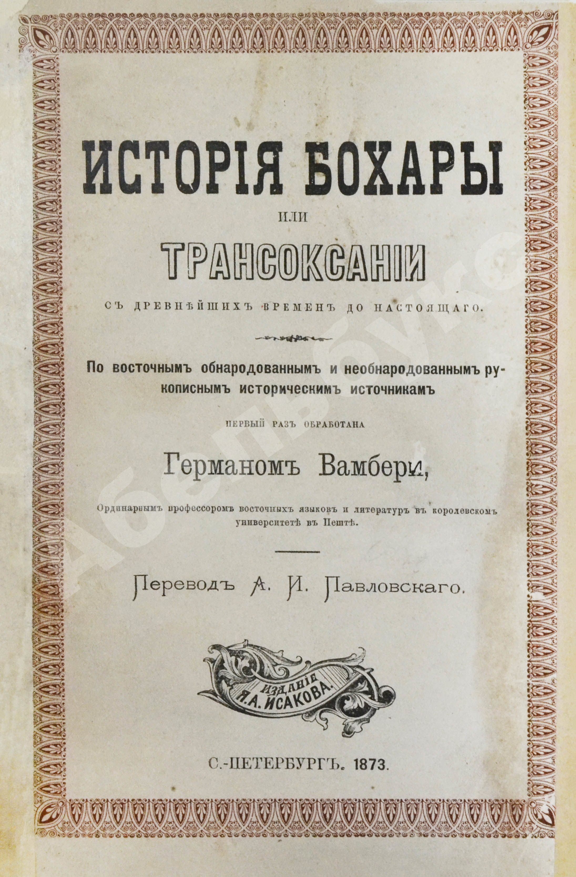 Вамбери, Г. История Бохары или Трансоксании с древнейших времён до настоящего
