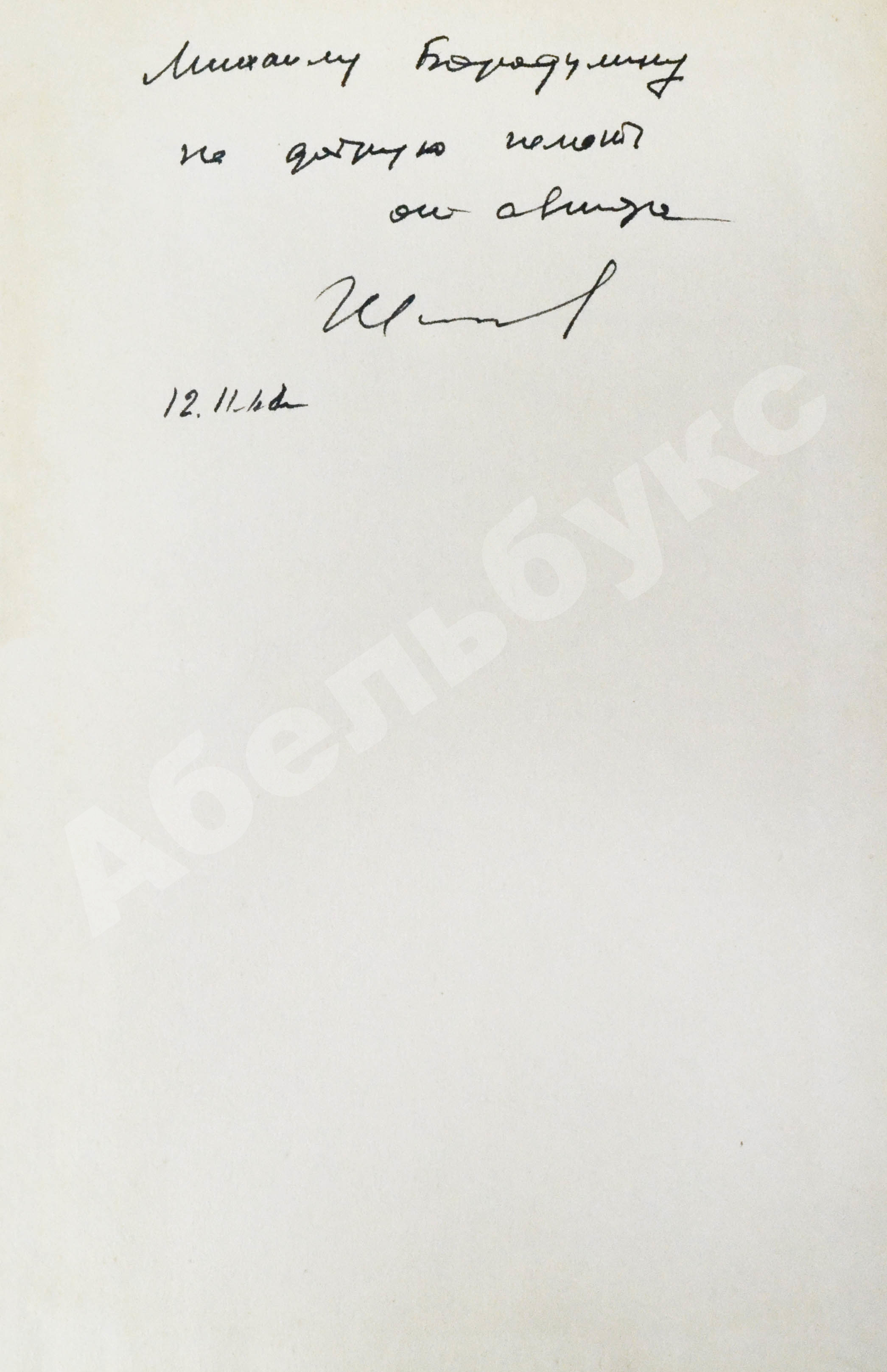 На свободном листе форзаца автограф автора: «Михаилу Бородулину на добрую память от автора [подпись] / 12. 1968 г».