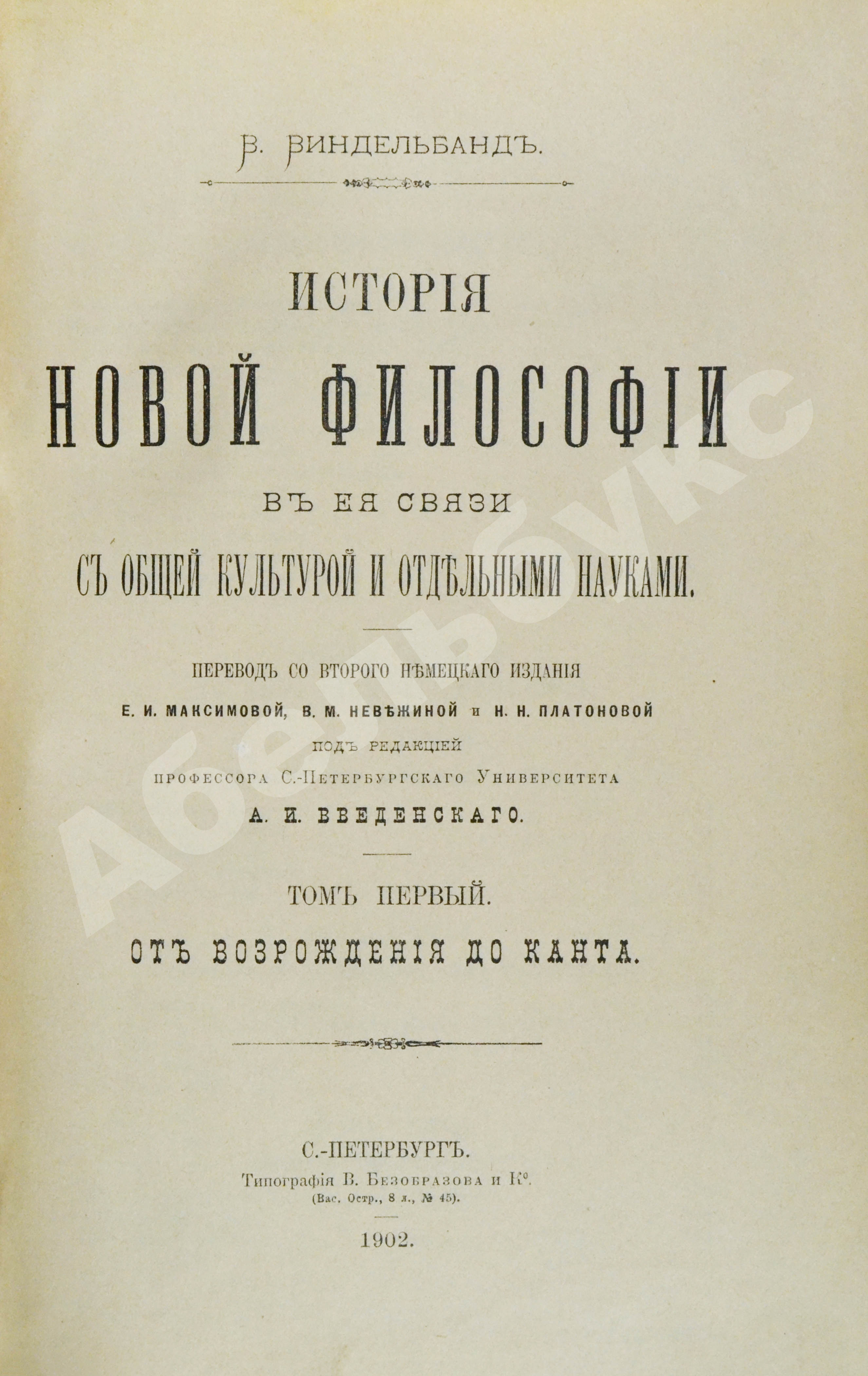 Виндельбанд, В. История новой философии в её связи с общей культурой и отдельными науками