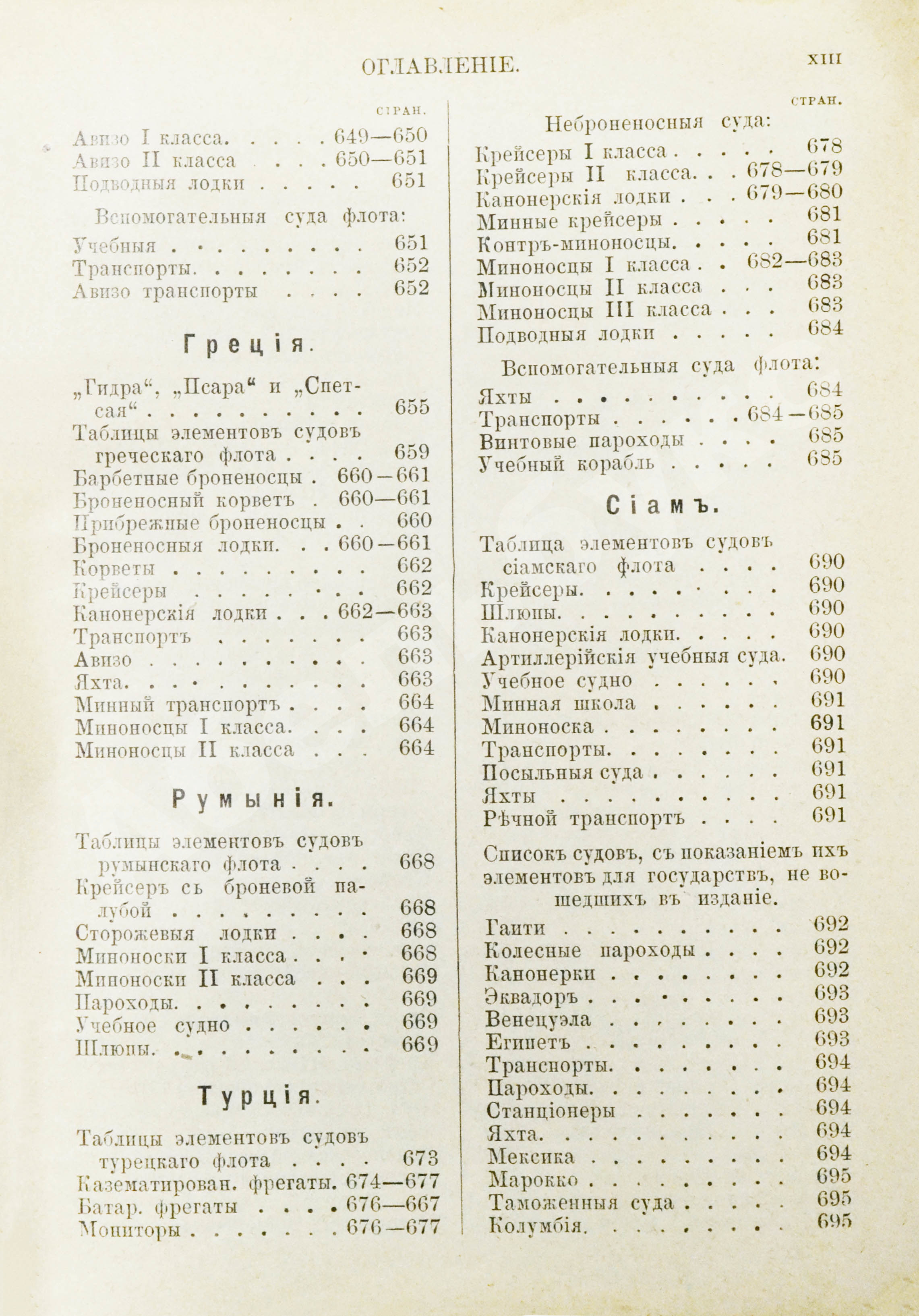 Первый в России ежегодник, в котором наряду с отечественным военно-морским флотом освещались флоты 20 иностранных государств – Германии, Франции, Голландии, Дании, Греции, Румынии, Китая, Японии, Сиама, Турции, Аргентины, США и других. Справочник выпускался под руководством и на средства великого князя Александра Михайловича, внука Николая I. Его отец, великий князь Михаил Николаевич, был четвёртым, самым младшим, сыном Николая I.