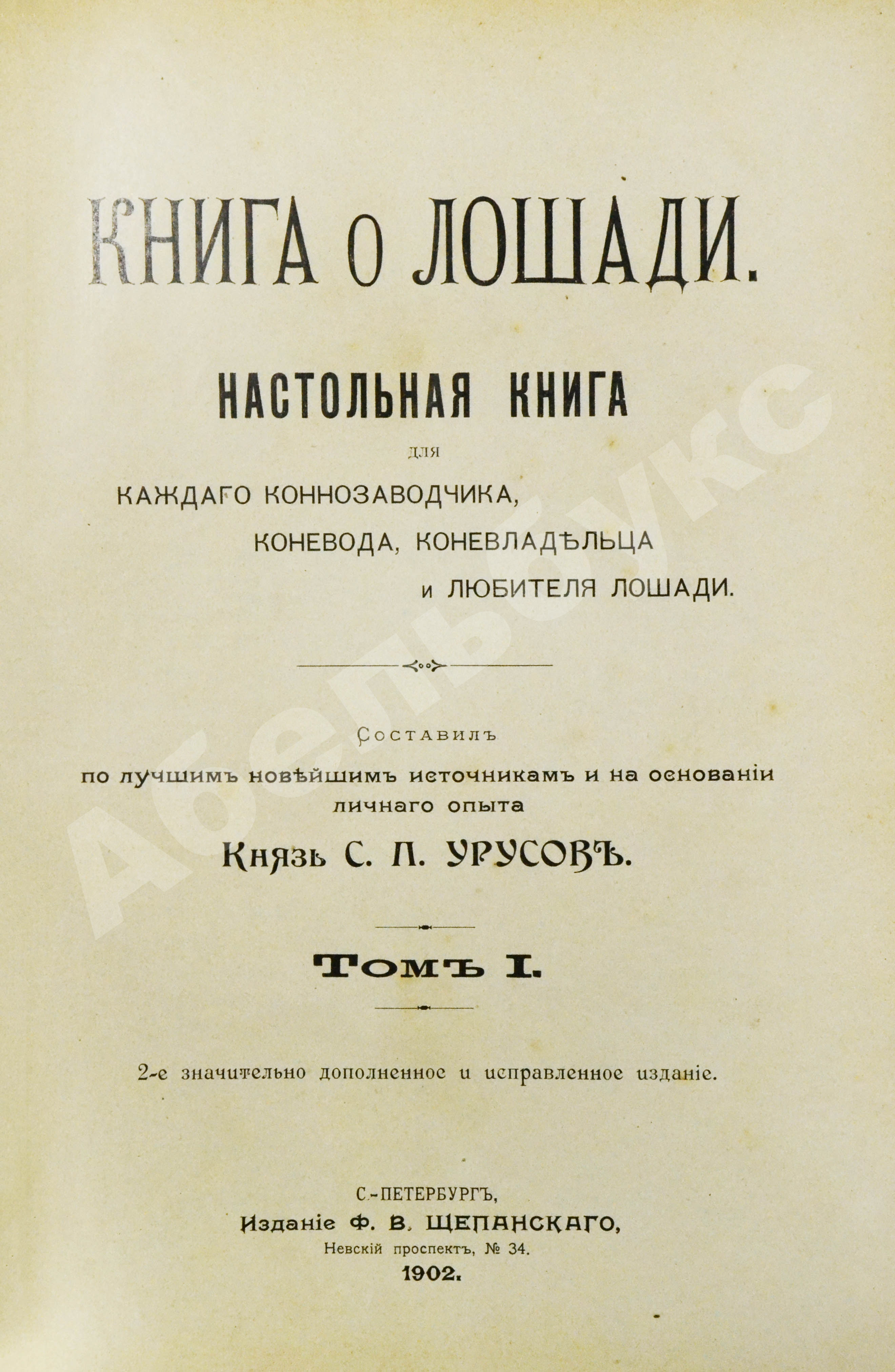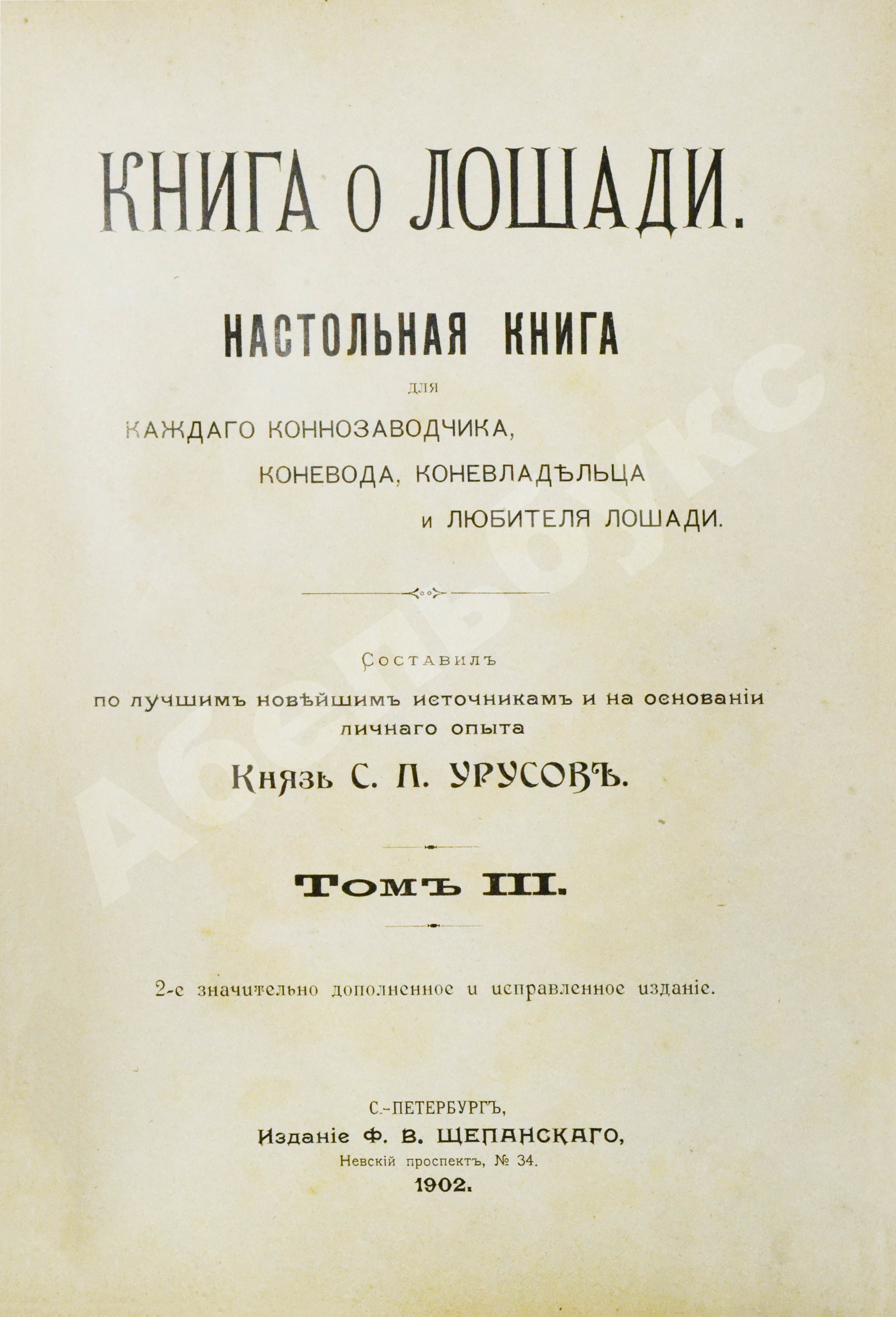 Настольная книга для каждого владельца и любителя лошади графа К.Г. Врангеля. Обработана для применения в России с 3-го немецкого издания «Das Buch vom Pferde» специалистами по гиппологии / под ред. князя С.П. Урусова.