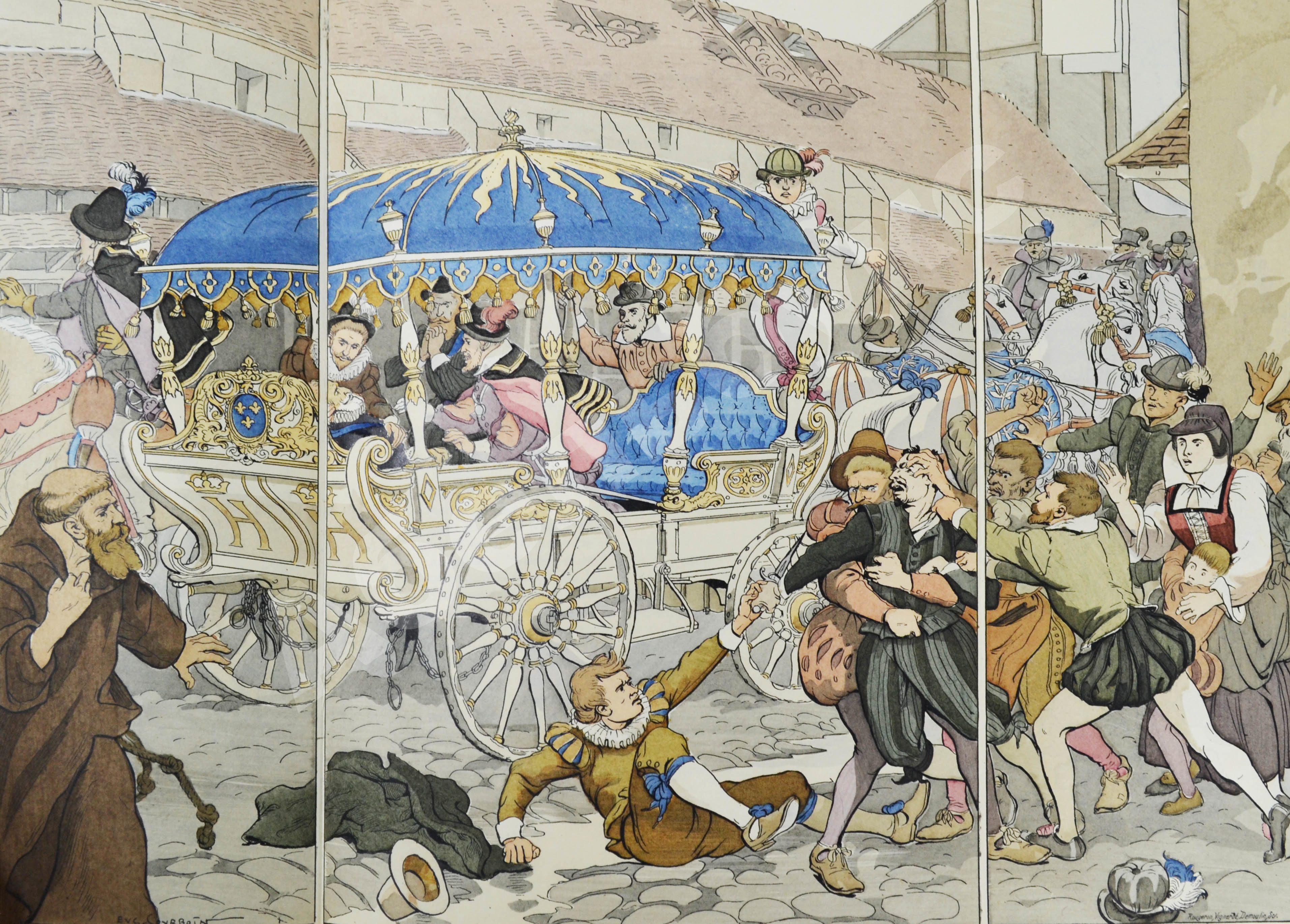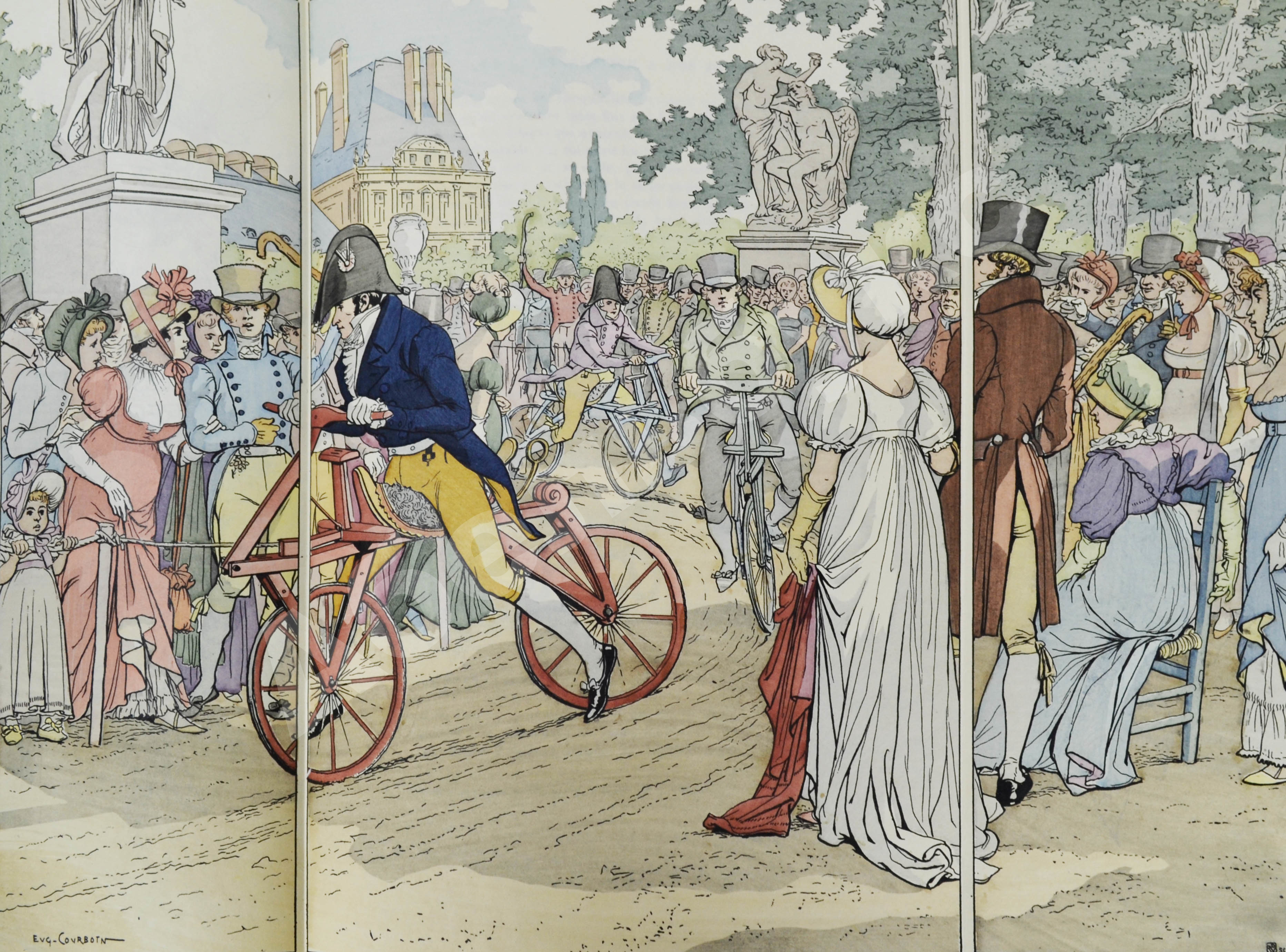 Иллюстрации для данной книги подготовил популярный парижский художник Эжен Курбуэн (1851–1925). Он работал в сатирических газетах L’Assiette au beurre и Paris illustré, проиллюстрировал множество книг. Известен также как автор историй в картинках, комиксов – в начале прошлого века рисованные истории издавались в Европе брошюрами по двенадцать картинок.