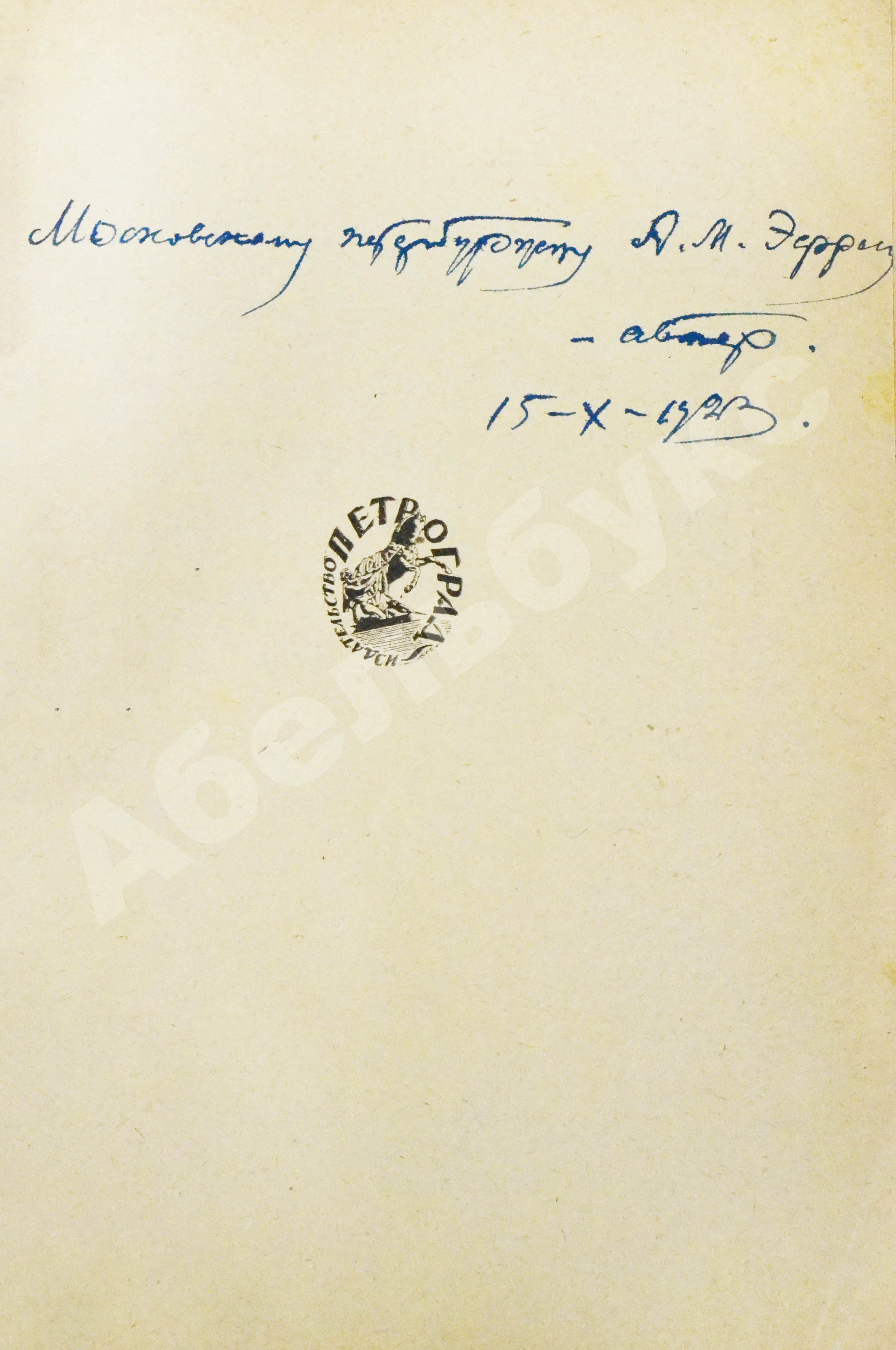 Автограф адресован Абраму Марковичу Эфросу (1888–1954) – искусствоведу, переводчику, соредактору Евгения Замятина по журналам «Современный Запад» и «Русский современник».
