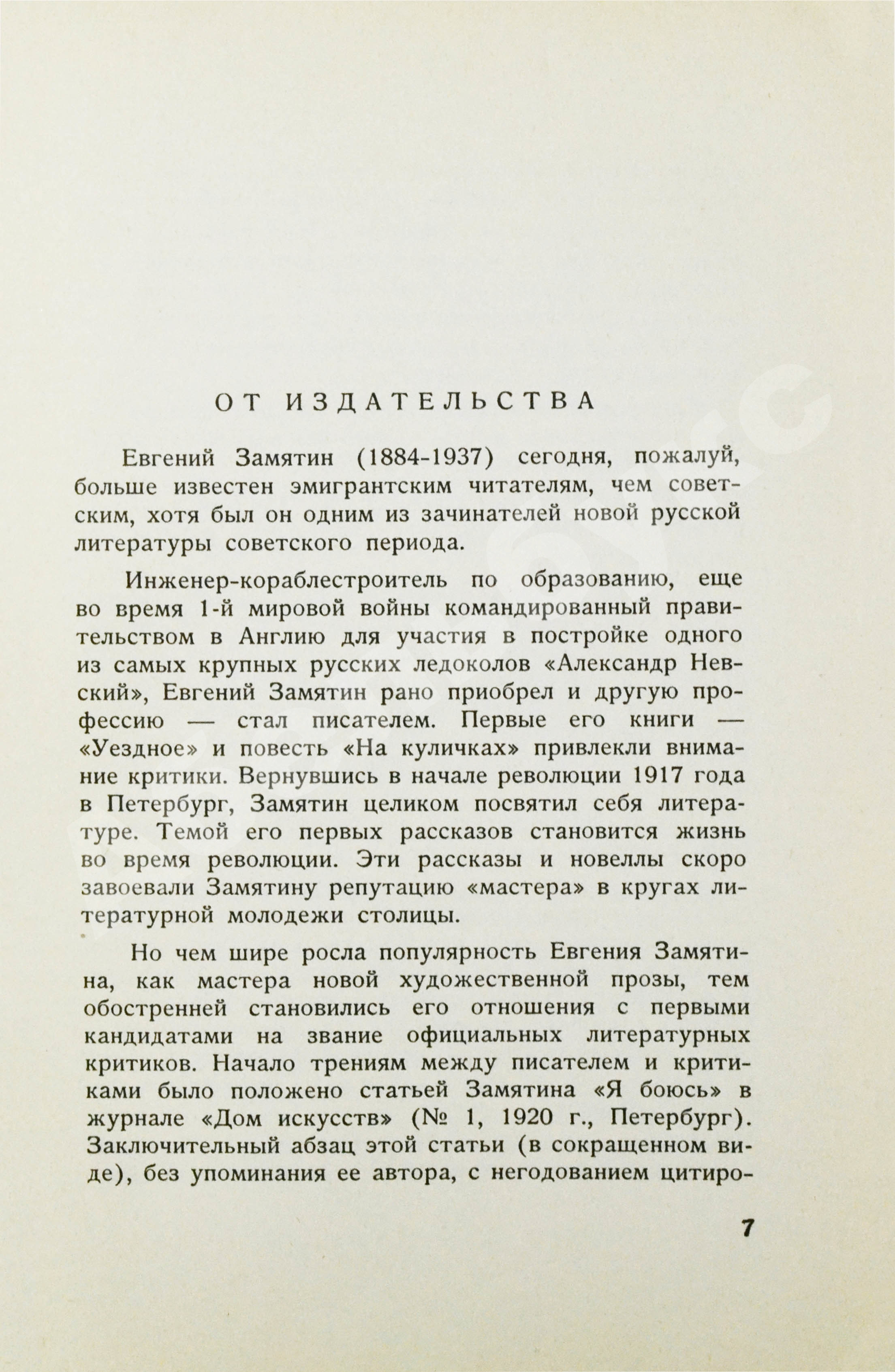 Влюблённый в первую русскую революцию, вдохновлённый «весёлой, жуткой зимой 1917 года», Замятин, по профессии инженер-кораблестроитель, активно влился в постреволюционный литературный процесс: работал в горьковской «Новой жизни», издательствах «Алконост», «Петрополис», Зиновия Гржебина, участвовал в составлении грандиозной издательской программы «Всемирной литературы», был членом правления Союза деятелей художественной литературы, сотрудничал со множеством журналов, редактировал переводы, писал предисловия, читал курс новейшей литературы в Педагогическом институте имени А. Герцена, лекции по технике художественной прозы – в литературной студии Дома искусств…