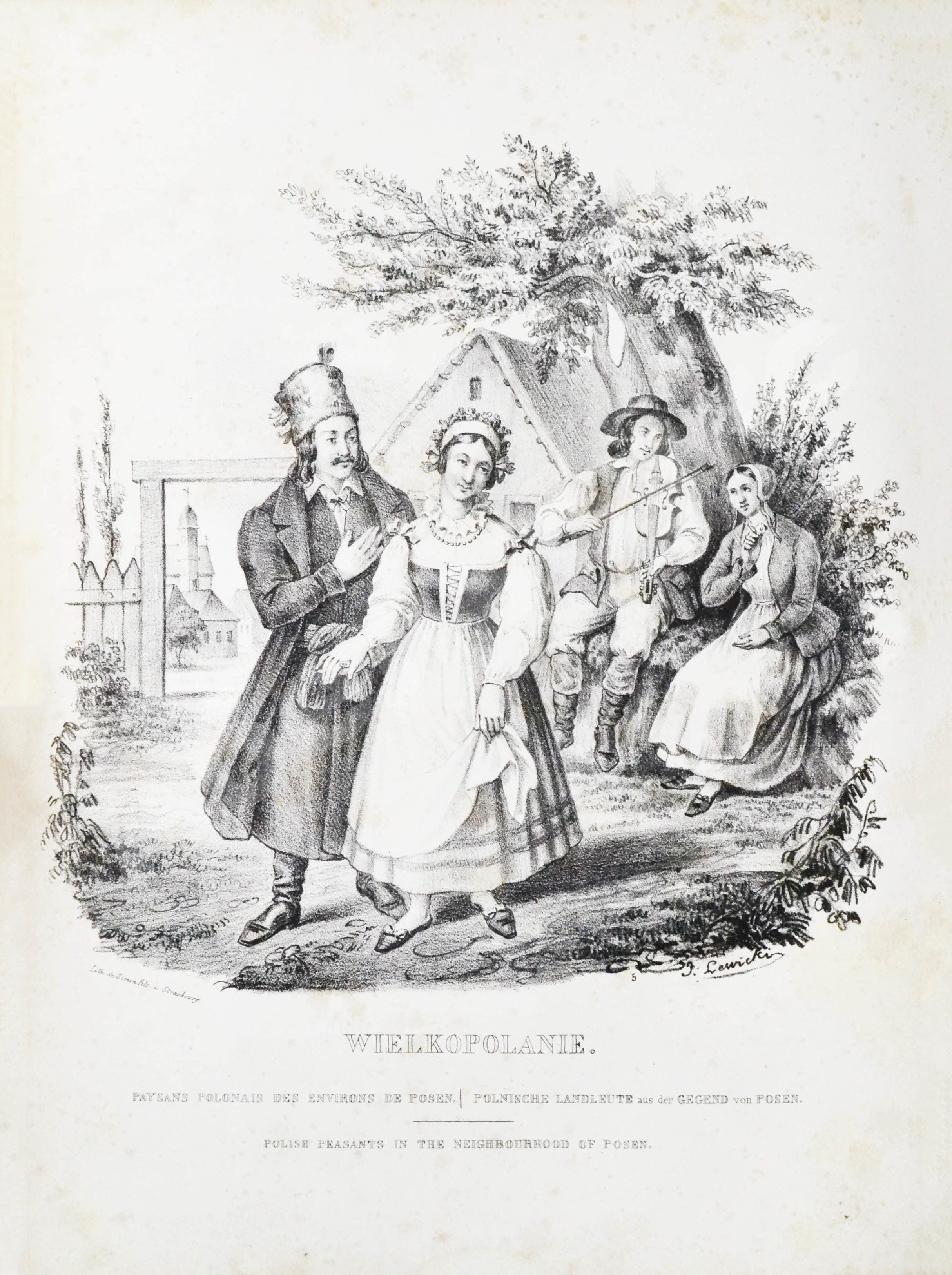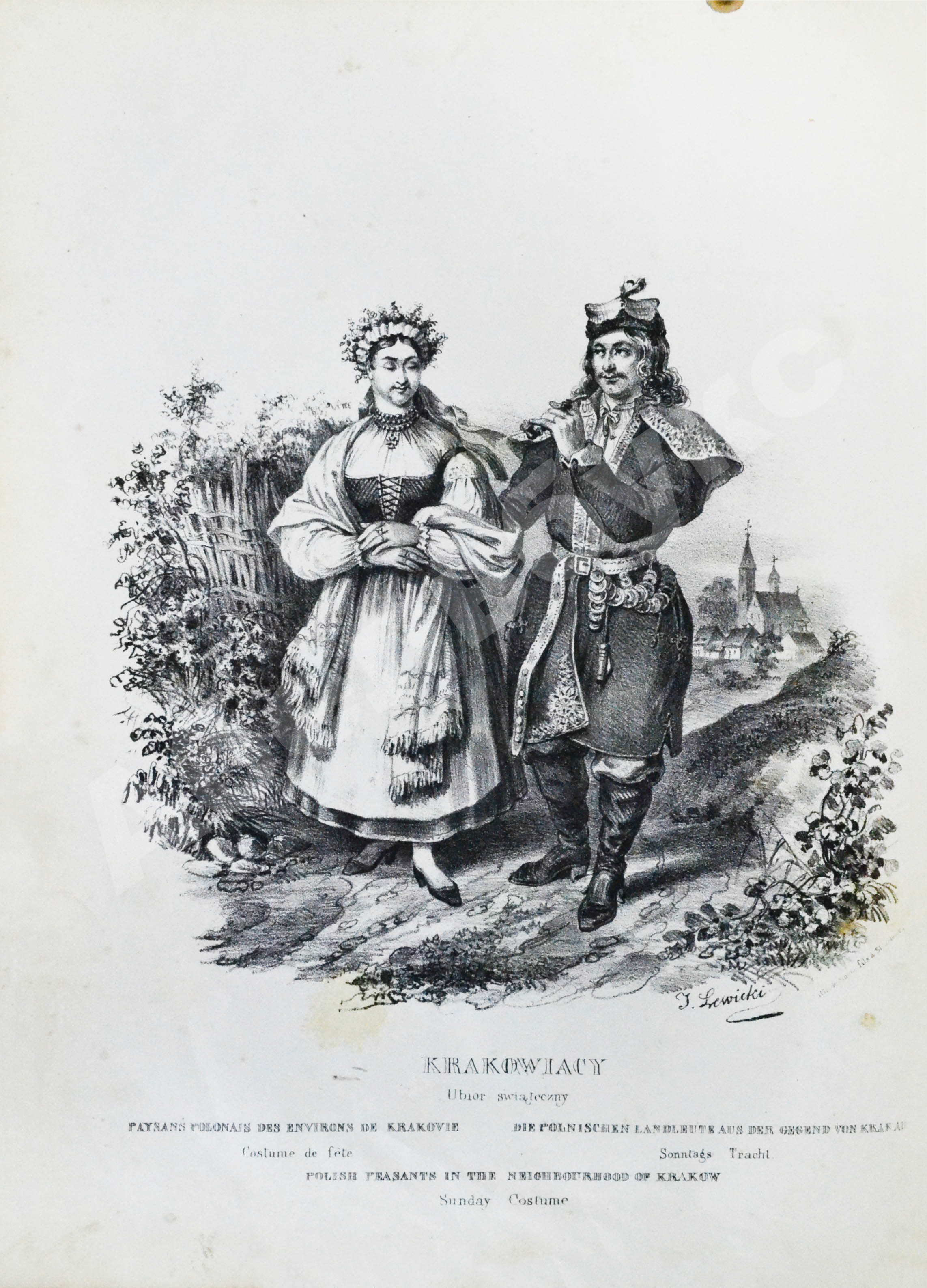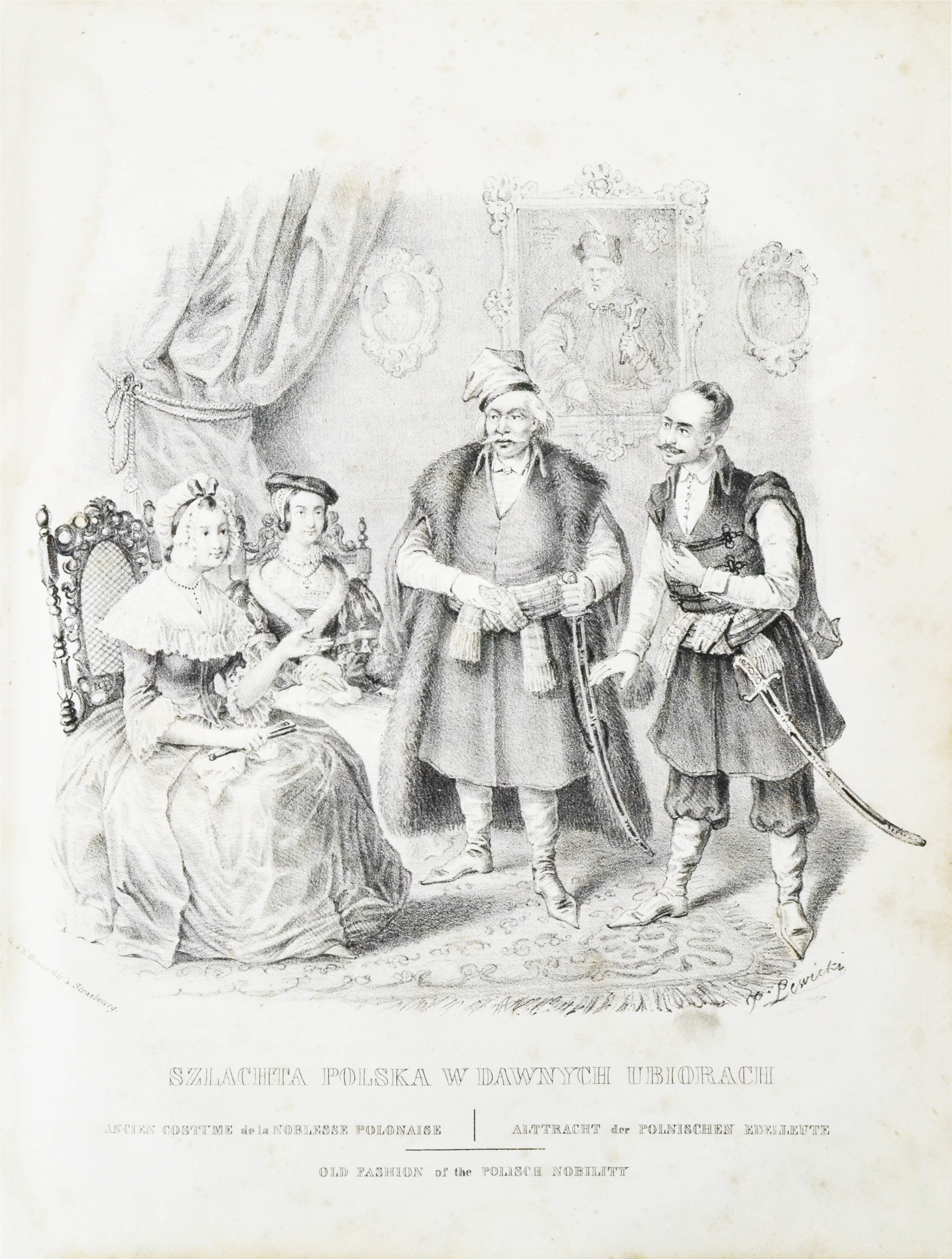 Костюмы по рисункам Левицкого и А. Витмана, литографированные ы типографии «Симон и сыновья» в Страсбурге. Удивительная по красоте и патриотичности книга польского политического активиста, поэта и публициста Леона Зенковича, бежавшего во Францию во время Великой эмиграции в начале 1830-х гг. С 1832 по 1856 гг. в Польше действовал так называемый режим Паскевича, который предполагал разносторонние меры, направленные на подавление национального самосознания. В частности, был введён запрет на ношение национальных костюмов.