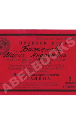 Пропуск на Красную площадь на похороны Иосифа Сталина
